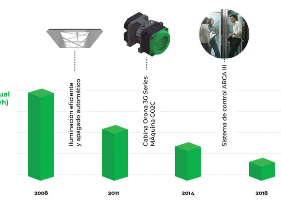 Gráfico de la reducción del consumos energético en ascensores en los últimos 10 años