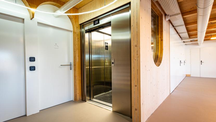 Pour garantir une mobilité confortable entre ses différents niveaux, le bâtiment intègre un ascenseur Orona X10, desservant 3 niveaux et offrant une capacité de 630 kg / 8 personnes. Son design compact et efficace s’adapte parfaitement aux besoins du centre, assurant accessibilité, fluidité et un déplacement sûr pour tous les utilisateurs.