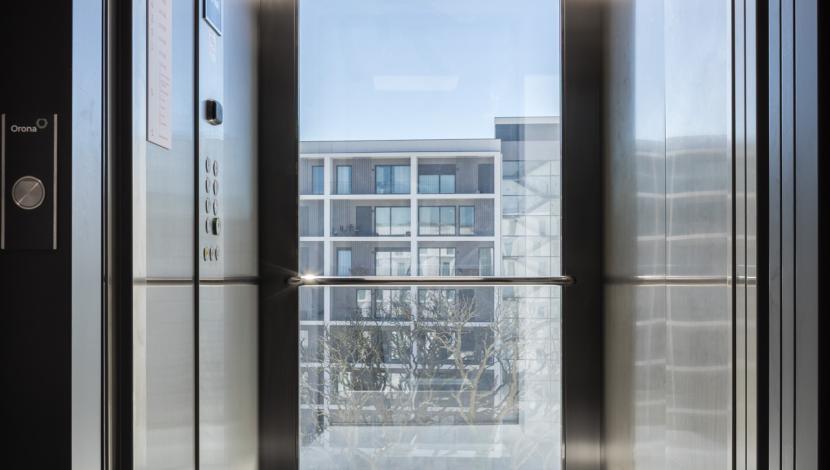 Os elevadores Orona integram-se de forma impecável neste ambiente atual, apostando em cabinas espaçosas, linhas limpas e soluções acessíveis que facilitam a mobilidade dentro do edifício. A transparência do elevador panorâmico, presente num dos pisos, acrescenta um toque de design e uma ligação visual ao exterior, reforçando a sensação de abertura e modernidade do conjunto.
